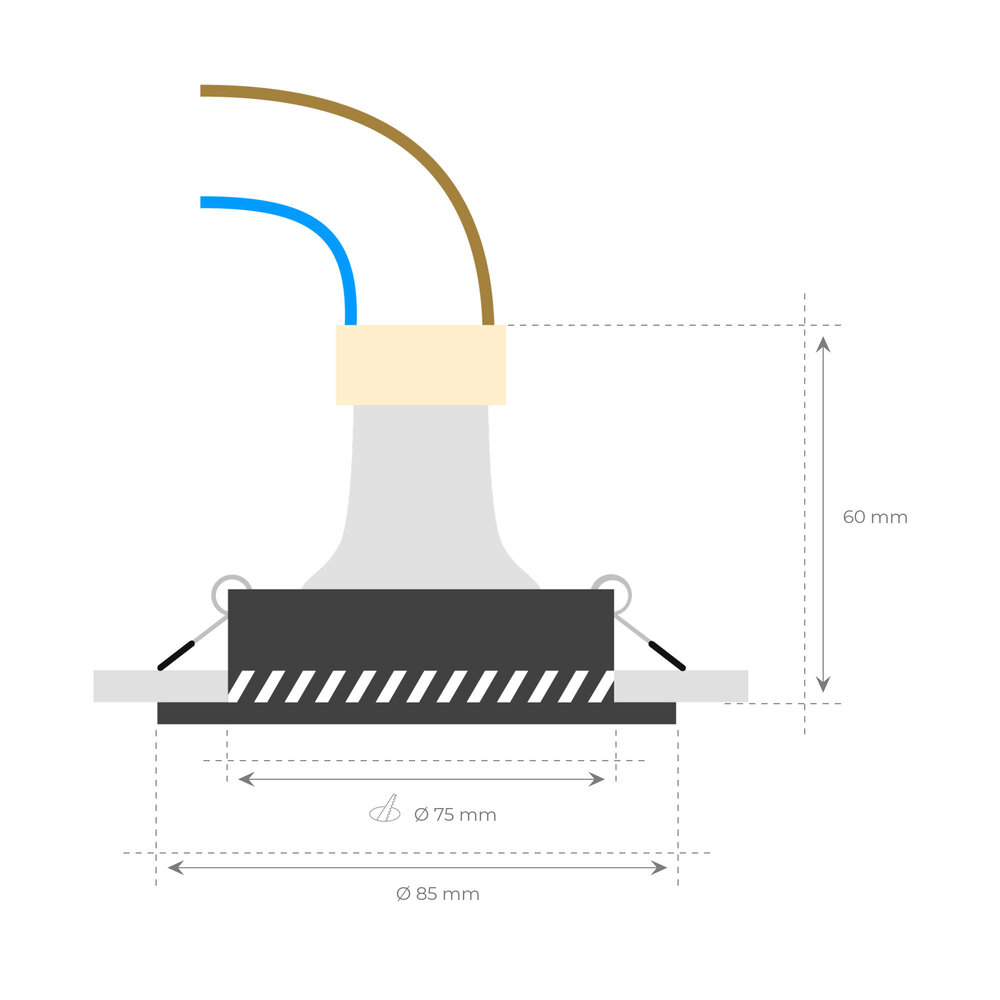 Een voordeel aan deze witte spotjes is dat deze een lage inbouwdiepte hebben. Dankzij een zaagmaat diameter van 75-80 mm en een inbouwdiepte van maar 60mm zijn deze spotjes nagenoeg geschikt voor elk plafond.