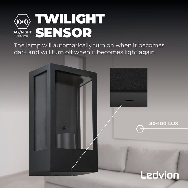 Wandlamp Buiten met Schemeringssensor - 7.5W - 2100K - IP44 - Zwart